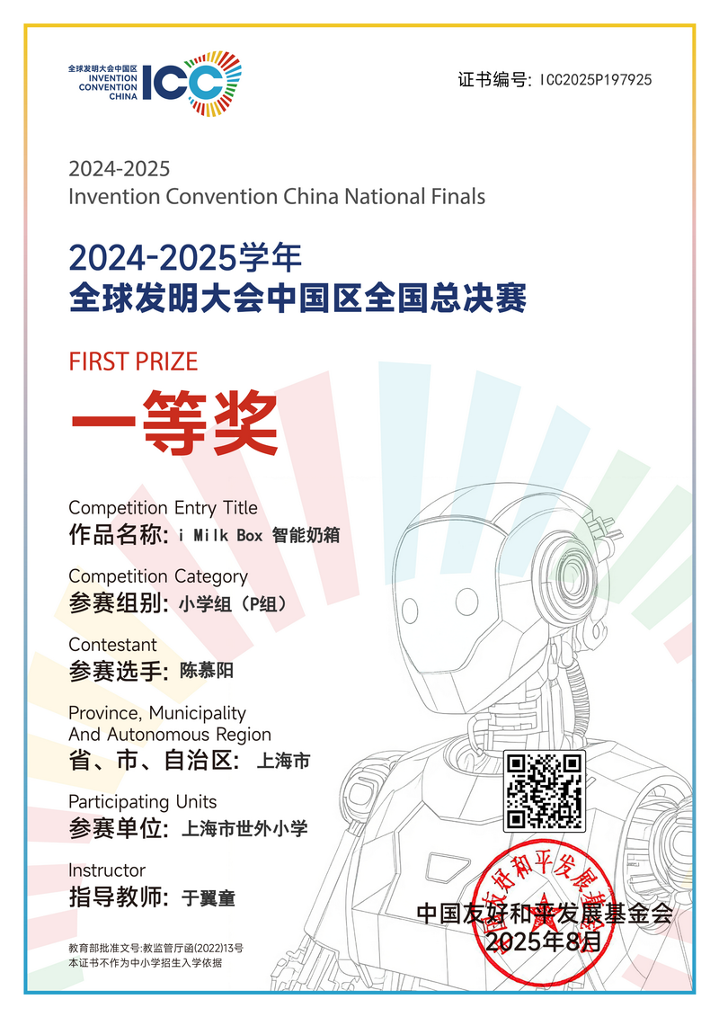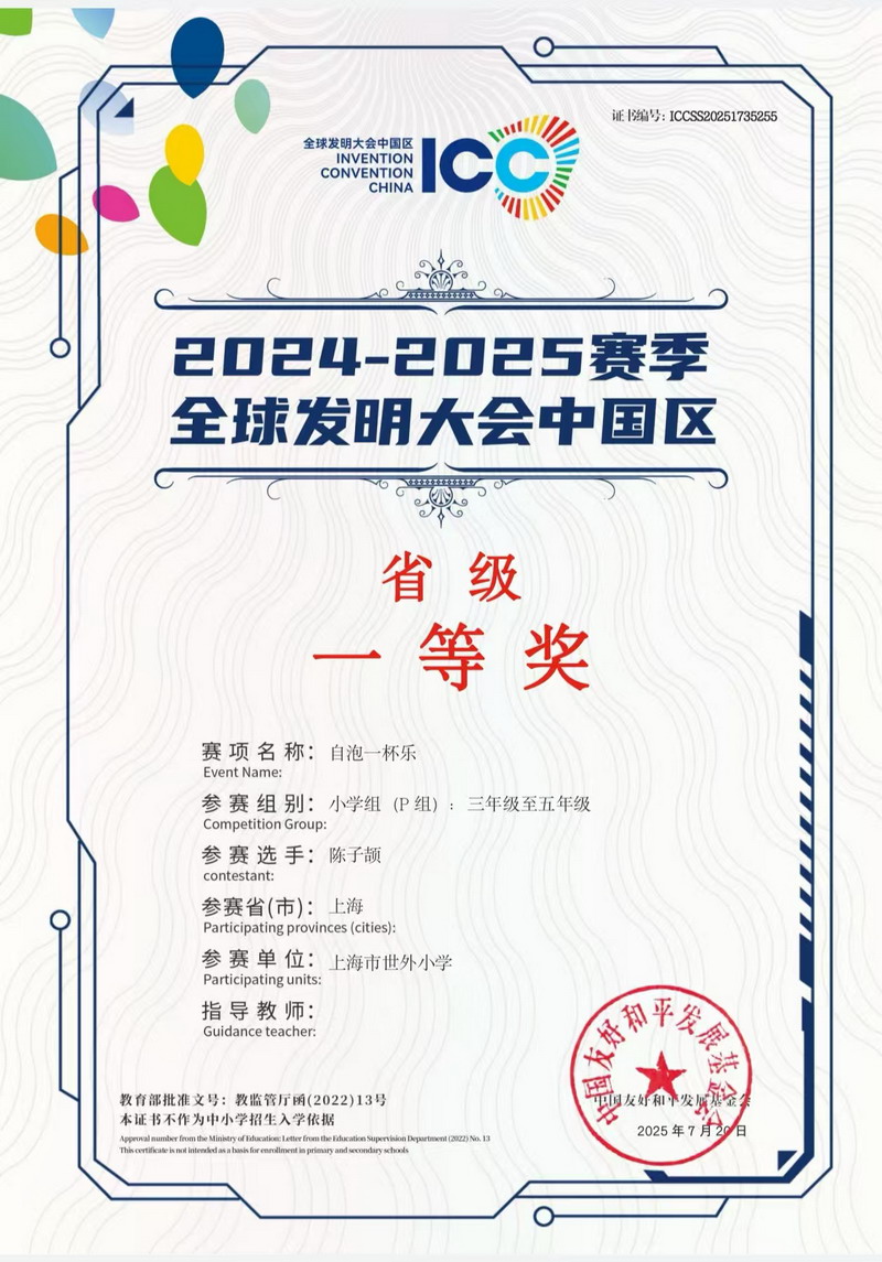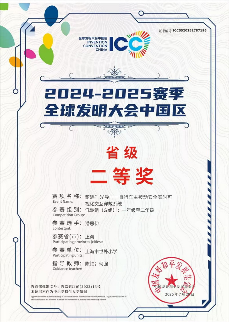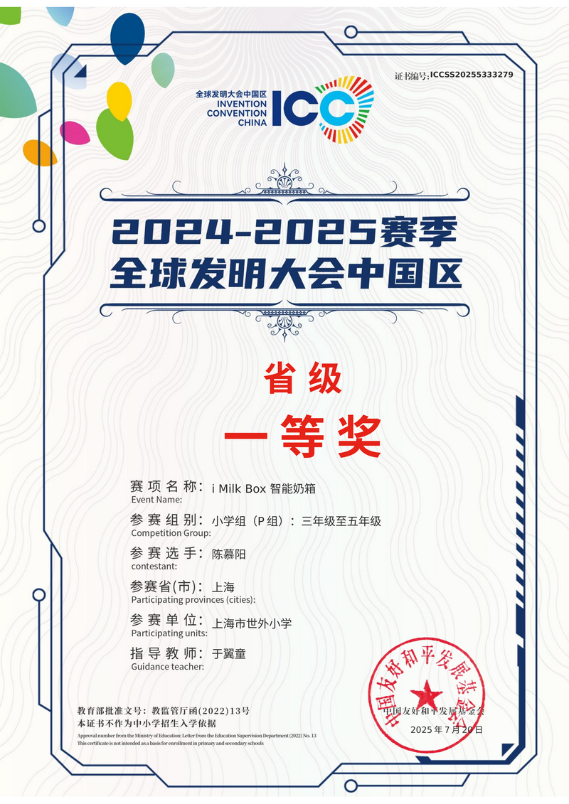 在備受矚目的ICC全球發(fā)明大會(huì)(中國區(qū)) 比賽中,世外小學(xué)學(xué)生從省賽到國賽一路高歌猛進(jìn)。在省賽階段,同學(xué)們圍繞各類主題,提交了多份充滿人文關(guān)懷與科技智慧的發(fā)明作品,成功斬獲多個(gè)一、二等獎(jiǎng),并順利晉級(jí)全國總決賽。在強(qiáng)手如云的國賽舞臺(tái)上,世外小學(xué)學(xué)子沉著應(yīng)戰(zhàn),其作品憑借巧妙的構(gòu)思和切實(shí)的可行性,再次榮獲全國級(jí)獎(jiǎng)項(xiàng),贏得了評(píng)委的高度認(rèn)可。